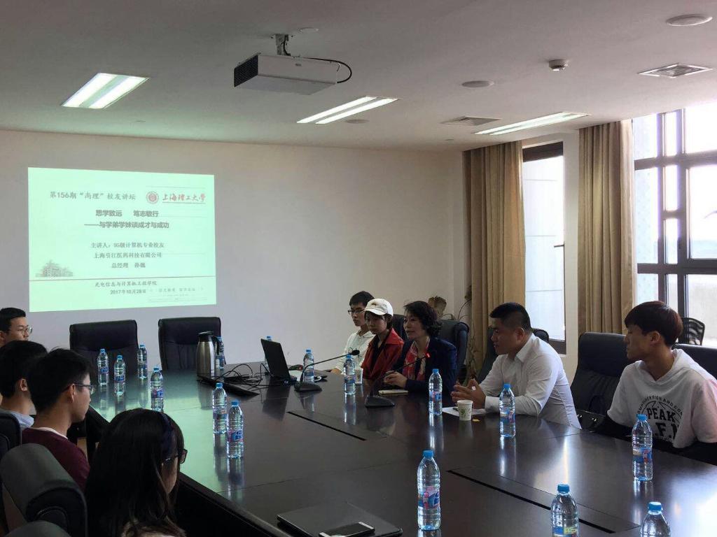 2017年10月28日,恰逢上海理工大学111周年校庆日。学院邀请上海引江医药科技有限公司总经理孙巍学长为学弟学妹们进行了以“思学致远笃志敏行——与学弟学妹谈成才与成功”的讲座,此次讲座同时也是上海理工大学第156期“尚理”讲坛。孙巍学长是光电学院95级计算机专业的毕业生,他结合自身就业创业的经验,希望学弟学妹们重视对未来的规划。孙学长说:“那些默默无闻的研究工作者对这个社会最大的贡献是,告诉后人他们走的路是错误的。因此不要浪费自己的时间,汲取前人留下的经验和教训,找到真正适合自己的道路。”他告诫我们,在这个大众创业,万众创新的时代,要将心沉静下来,积累足够多的社会经验和资本再去创业。孙学长也希望学弟学妹们能够利用在校的美好时光,好好学习,不要虚度青春。